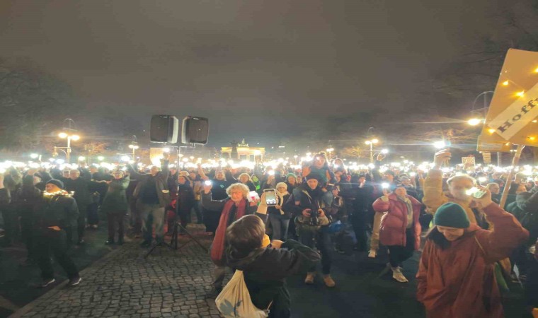 Almanya’nın başkenti Berlin’de yaklaşık 100 bin kişi artan aşırı sağ tehdidine karşı protesto gösterisi düzenlerken, eylemciler, cep telefonlarının ışıklarıyla sembolik bir ışık denizi oluşturarak “yaklaşan karanlığa” dikkat çekti.
