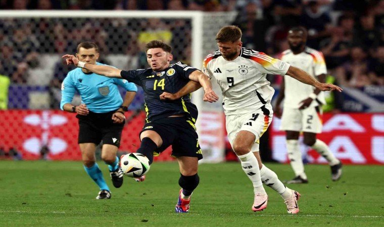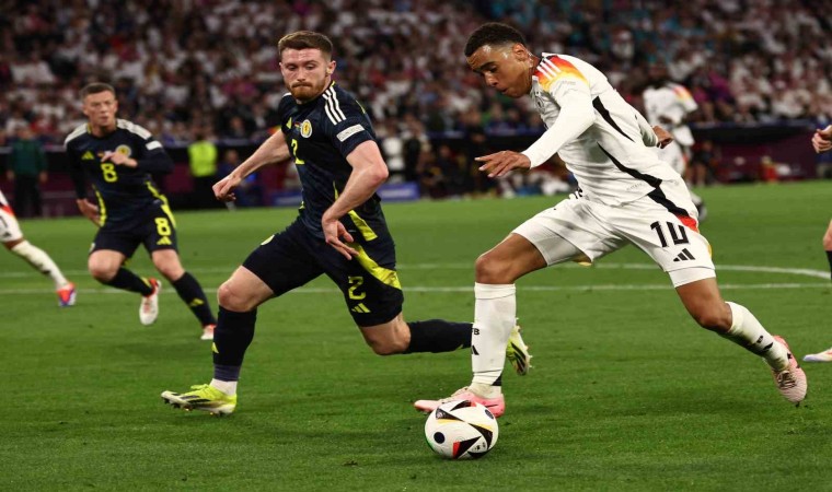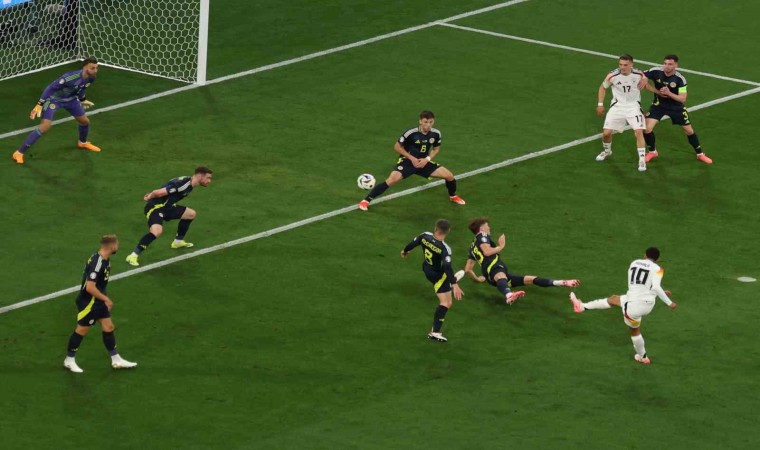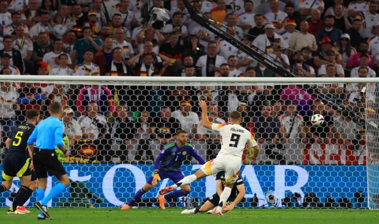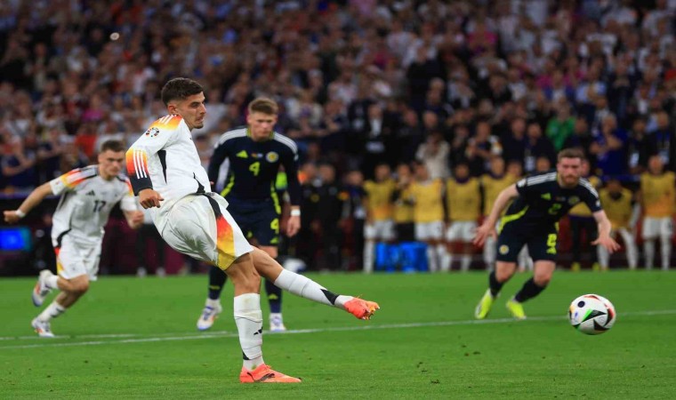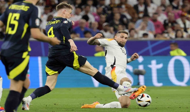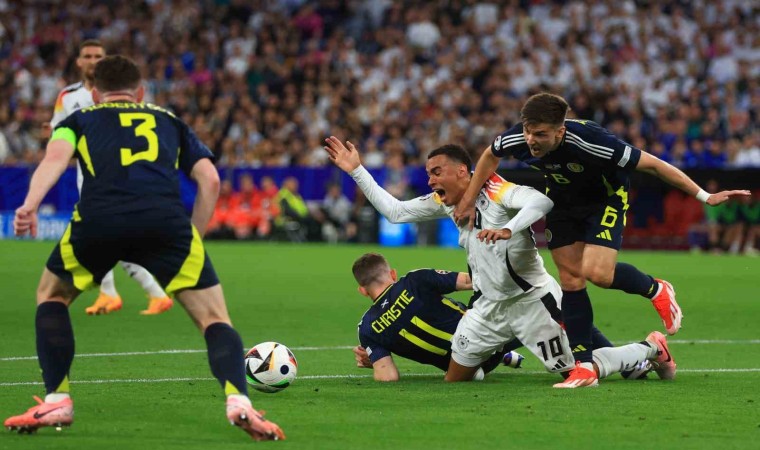 Avrupa’nın ülke düzeyinde en önemli turnuvasında ev sahibi Almanya, A Grubu’nun ilk maçında Allianz Arena’da İskoçya ile karşı karşıya geldi. Mücadele hızlı başlayan Almanya 10. dakikada öne geçti. Sağ kanattan Joshua Kimmich’in pasında ceza yayı üzerinde Florian Wirtz’in şutunda top yan direğe de çarparak ağlarla buluştu ve Panzerler 1-0 öne geçti. 19. dakikada İlkay’ın ara pasında ceza sahası sol çaprazda topla buluşan Kai Havertz, penaltı noktası üzerinde Jamal Musiala’yı gördü. Bu oyuncunun şık vuruşunda Almanya farkı 2’ye çıkardı. 25. dakikada ceza sahası içinde Musiala yere düşürülünce hakem penaltı noktasını gösterdi. Ancak VAR’dan gelen uyarının ardından faulün ceza sahası dışında olduğu belirlendi ve Almanya serbest vuruş kazandı. 28. dakikada Havertz’in kullandığı serbest vuruşta top kalecide kaldı. 42. dakikada ceza sahası içinde Ryan Porteous’un İlkay’a yaptığı hareket sonrası oyun durdu. VAR’dan gelen uyarı sonrası pozisyonu izleyen hakem Clement Turpin, önce beyaz noktayı gösterdi, ardından Porteous’u kırmızı kartla oyun dışı bıraktı. 45+1. dakikada penaltı atışını kullanan Havertz’in golüyle Almanya soyunma odasına 3-0 önde girdi. İkinci yarıda da Almanya üstünlüğünü sürdürdü. 68. dakikada İlkay’ın pasında ceza sahası içinde topla buluşan Niclas Füllkrug topu ağlara göndererek skoru 4-0’a getirdi. 87. dakikada İskoçya atağında ceza sahası içinde Antonio Rüdiger kafayla topu kendi kalesine gönderdi fark 3’e indi. 90+3. dakikada sahneye Emre Can çıktı ve maçın skorunu belirleyen golü kaydetti. 5-1