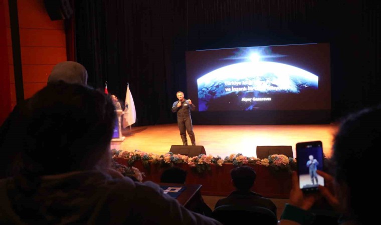 Türkiye’nin ilk astronotu Alper Gezeravcı, Sakarya’da üniversiteli gençlerle buluştu. Gençlere uzay yolculuğu hakkında bilgiler veren Gezeravcı, “Cumhurbaşkanımız tarafından uzaya dair 10 ana hedef belirlendi. Yapmış olduğumuz Türk astronot ve bilim misyonu bu on hedeften sadece bir tanesiydi” dedi.