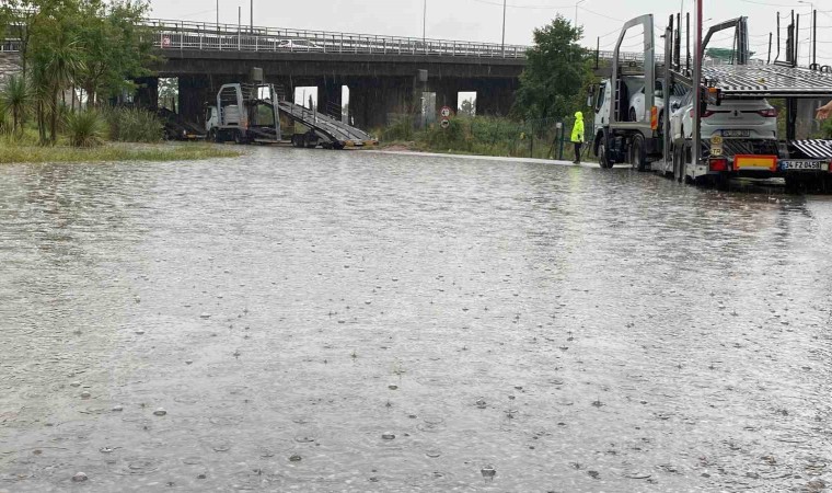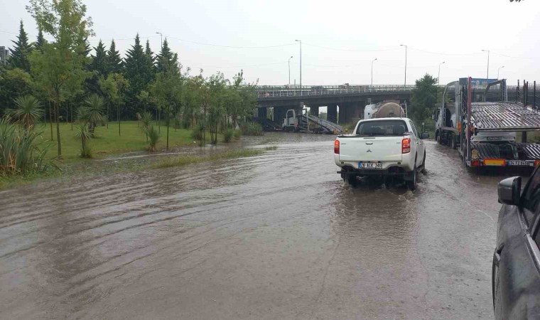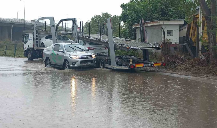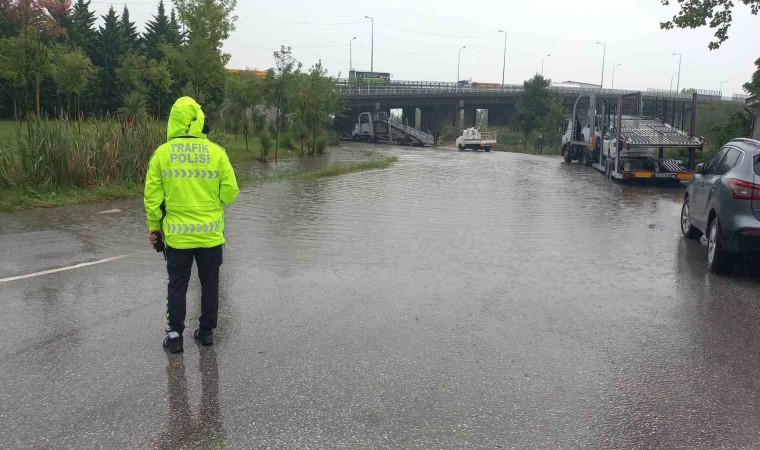 Kocaeli’nin Başiskele ilçesinde etkili olan sağanak sebebiyle D-130 Kullar Köprüsü alt geçidini su bastı. Trafik polisleri kontrollü olarak araç geçişlerini sağladı.