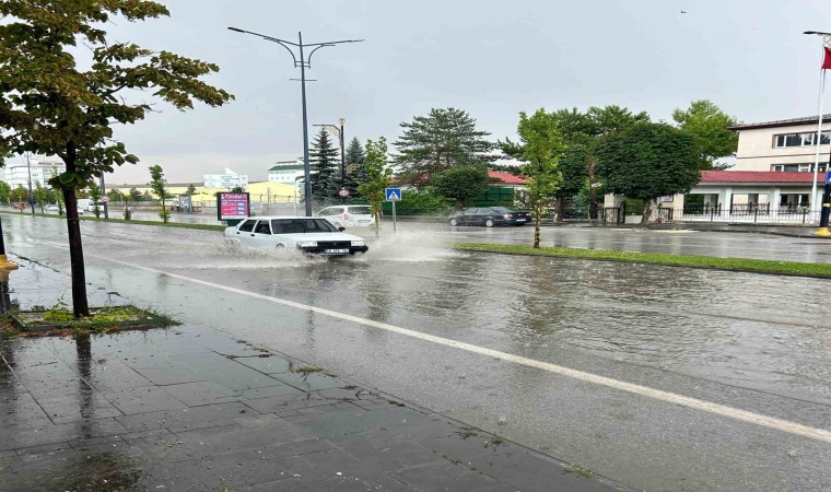 Sivas’ta yağan yağmurla birlikte cadde ve yollar adeta göle döndü.