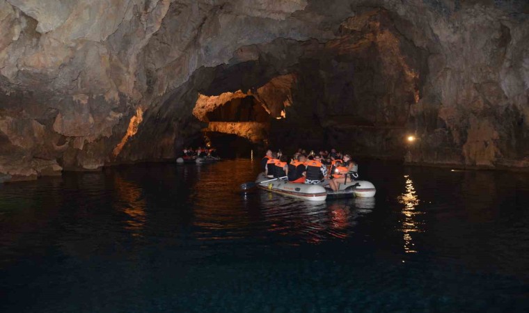 Turkuaz renkteki suyun üzerinde gezi botları ile mağaranın güzelliklerini keşfe çıkan yerli ve yabancı ziyaretçiler, Antalya’nın bu cennet kösesine hayran kaldı. Ziyaretçiler ise Antalya’nın kavurucu sıcaklığında yanarken, Antalya’da hava sıcaklığının sadece burada 17 derecede olması ise ziyaretçilerin mağaranın içerisinden çıkmak istemiyorlar.