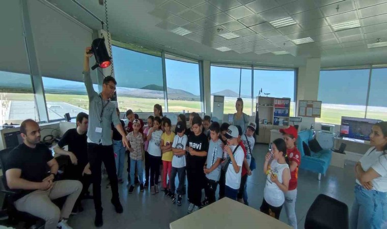 İtfaiye biriminde mini bir tatbikat da gerçekleştiren yetkililer, teknik kulede de uçak iniş operasyonunu öğrencilere canlı canlı yaşattılar. Öğrenciler son olarak terminal binasında uçağın kalkışına tanıklık etti.