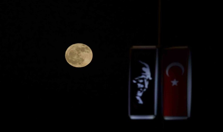 Hatay’da havanın kararmasıyla doğan dolunay, Amanos Dağı semalarında eşsiz bir görüntü ortaya çıkardı.