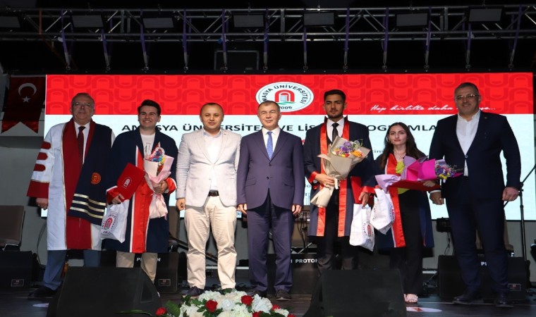 Mezun öğrenciler adına konuşma yapan Amasya Üniversitesi 2023-2024 akademik yılı birincisi Hüseyin Sevimli de, “Amasya Üniversitesinden mezun olmanın gururunu ve mutluluğunu birlikte yaşıyoruz. Sevgili mezun arkadaşlarım, bugün elde ettiğimiz başarı bir meslek sahibi olmaktan çok daha fazlasıdır. Emek vererek, azimle çalışarak ve karşılaştığımız zorluklarla mücadele ederek geldiğimiz bu nokta her birimizin kişisel bir zaferi olarak kabul edilebilir. Bu yolda bize destek olan ailelerimize, hocalarımıza ve dostlarımıza minnettarız. Başarının sırrı sadece bilgi ve beceride değil, aynı zamanda tutku ve azimdedir. Hepimiz, hayallerimize giden yolda kararlılıkla ilerlemeli ve asla vazgeçmemeliyiz” şeklinde konuştu.