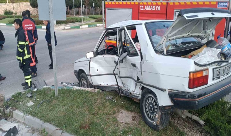 Amasya’da 2 otomobilin kavşakta çarpışması sonucu meydana gelen kazada 6 kişi yaralandı. Kaza anı kameraya yansıdı.