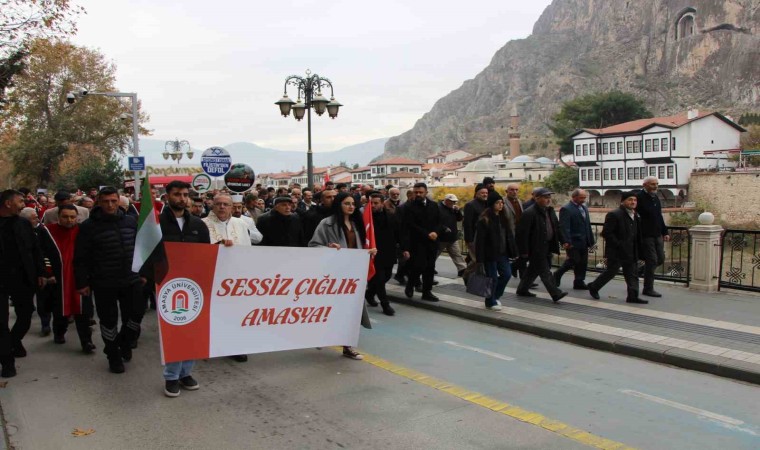 Amasya Üniversitesi’ndeki akademisyenler, İsrail’in Gazze’de yaşattığı insanlık dramına ve vahşete düzenlenen sessiz çığlık yürüyüşüyle tepki gösterdi.