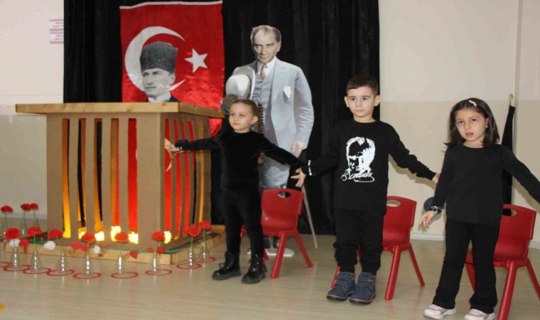 Minikler, öğretmenleriyle birlikte hazırladıkları temsili Anıtkabir maketine de karanfiller bıraktı. Etkinlik, öğrenci velileri tarafından ilgiyle izlendi.