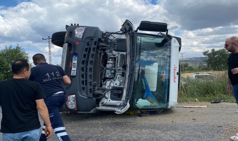 Amasya’da seyir halindeki beton mikseri kontrolden çıkarak devrildi. Kazada 1 kişi yaralandı.
