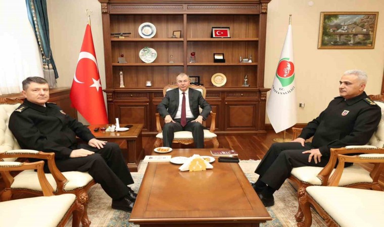 Vali Doruk, makamında ziyarette bulunan Jandarma Genel Komutanlığı Denetleme ve Değerlendirme Başkanı Tümgeneral Ferdi Korkmaz ile Amasya İl Jandarma Komutanı Albay Mehmet Arı’ya teşekkür etti.