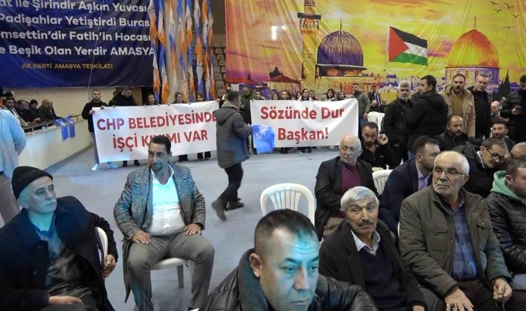 Amasya’da CHP’li Amasya Belediyesi’nin 3 gün önce işten çıkardığı işçiler, AK Parti Amasya İl Kongresi’nde "Sözünde dur başkan" yazılı pankart açarak, kongreye katılan Adalet Bakanı Yılmaz Tunç ile sorunlarını paylaştı.