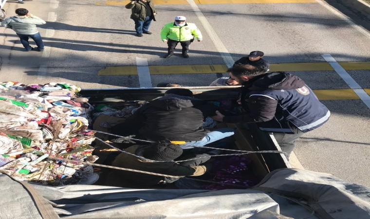 Amasya’da polisin durdurduğu çöp dolu tırın dorsesinde yapılan aramada Afganistan uyruklu 3 kaçak göçmen bulundu. Tırın sürücüsü gözaltına alındı.