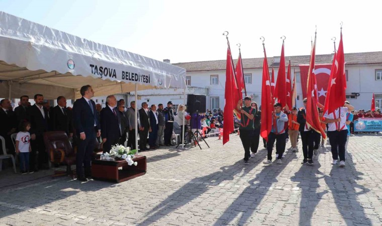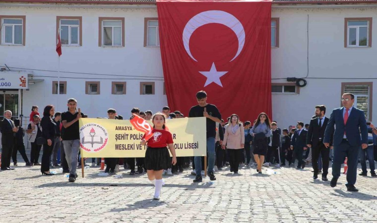 Taşova ilçesinde düzenlenen 29 Ekim Cumhuriyet Bayramı kutlamalarında “Dededen Toruna Emanettir Cumhuriyet” pankartıyla alana gelen çocuklar, Kıbrıs gazisi Muammer Torun’un verdiği Türk bayrağını öperek devraldı. Programda Yeşilırmak Şehit Ferhat Bolat İlkokulu öğretmen ve öğrencilerin oluşturduğu ay yıldızlı 100. yıl logolu koreografi ise ilgiyle izlendi.