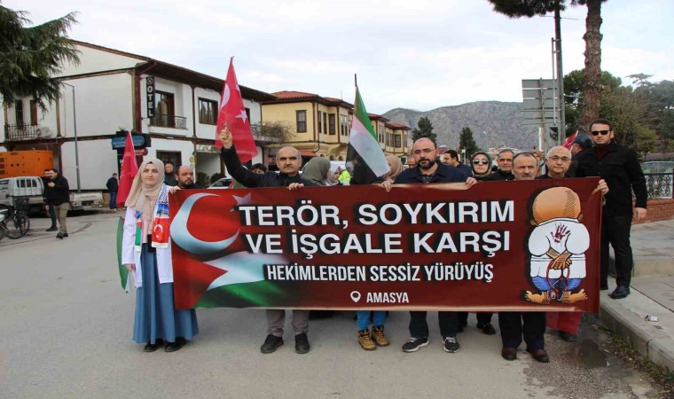 Amasya’da hekim ve sağlık çalışanları İsrail’in Gazze’de gerçekleştirdiği soykırım, işgal ile insanlık suçunu kınamak üzere sessiz yürüyüş yaptı.
