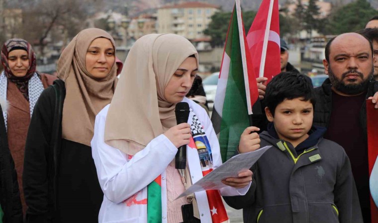 Katılımcıların ellerinde taşıdıkları Türk ve Filistin bayraklarıyla yaptıkları yürüyüş sonrası açıklamalarda bulunan Dr. Elif Sakallı, “Terör devleti İsrail, Filistin topraklarında bütün dünyanın gözü önünde sivilleri öldürmeye, hastaneleri bombalamaya devam ediyor. Bütün bu yaşananlara rağmen insan haklarından bahsedenlerin, eşitlik, adalet ve hukuk üstünlüğünü vurgulayanların haftalardır bu zulme sessiz kaldıklarını, hatta terör devletini desteklediklerini görüyoruz. Bu yapılanları asla unutmayacağımızı burada tekrar vurguluyoruz” dedi.
