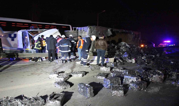 Yola dağılan ağır hurda malzemeleri iş makinesi yardımıyla temizlendi. Kazayla ilgili inceleme başlatıldı.