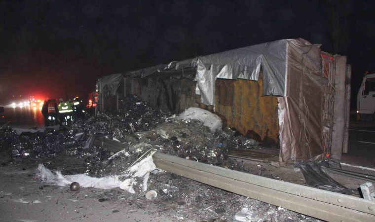 Edinilen bilgiye göre, Fatih V. yönetimindeki 46 AAV 373 plakalı tır, geç saatlerde Amasya merkez otobüs terminali yakınlarında kavşaktan yola girdikten sonra kontrolden çıkarak devrildi. Aydınlatma direğine ve bariyerlere çarparak yan devrilen tırın taşıdığı preslenmiş hurda malzemeleri yola dağıldı.