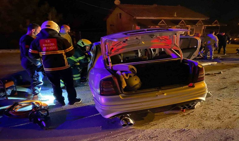 Amasya’da kontrolden çıkarak duvara çarpan otomobildeki 3 kişi yaralandı.
