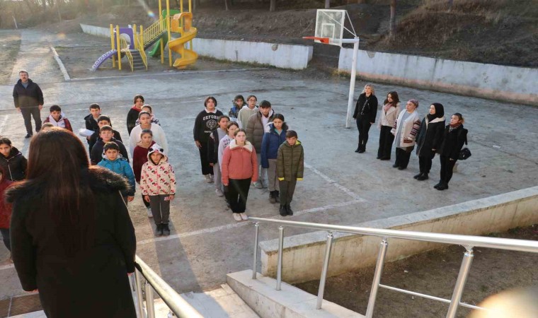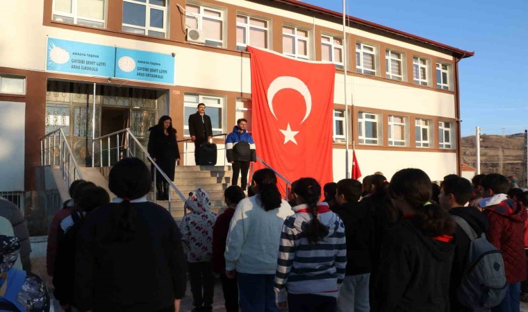 Amasya’nın Taşova ilçesinde bağlı Çaydibi köyünde Şehit Lütfi Aras İlk ve Ortaokulu öğretmen ile öğrencileri, şehitler için bir dakikalık saygı duruşunda bulunup ardından İstiklal Marşı’nı hep bir ağızdan okudu. Okulun konferans salonunda Kuran-ı Kerim tilavetinin ardından dua edildi.