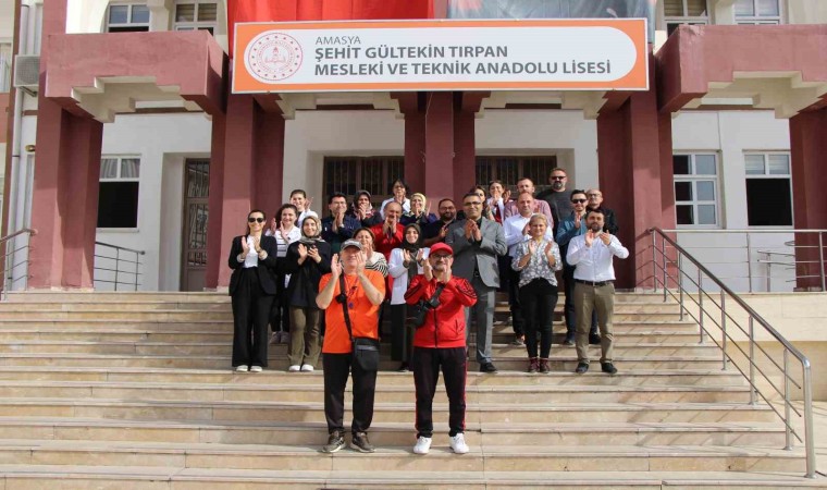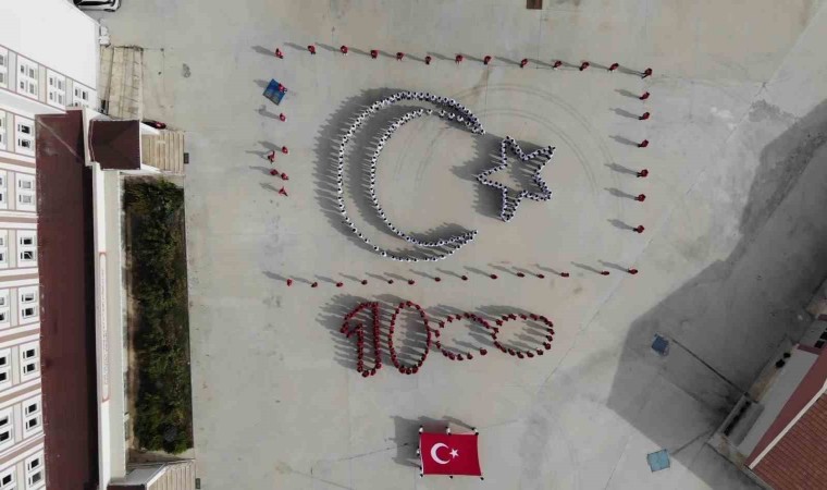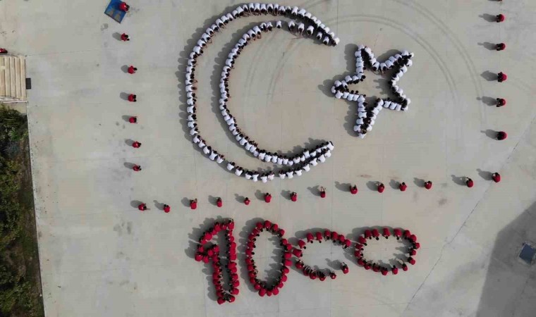 Amasya’da lise öğrencileri, Cumhuriyet’in 100. yılı etkinlikleri kapsamında ‘100. yıl’ ve ‘ay-yıldız’ koreografisi oluşturdu.