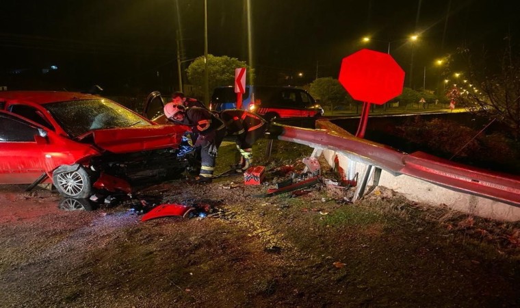 Amasya’da kontrolden çıkarak bariyerlere çarpan otomobilin sürücüsü yaralandı.