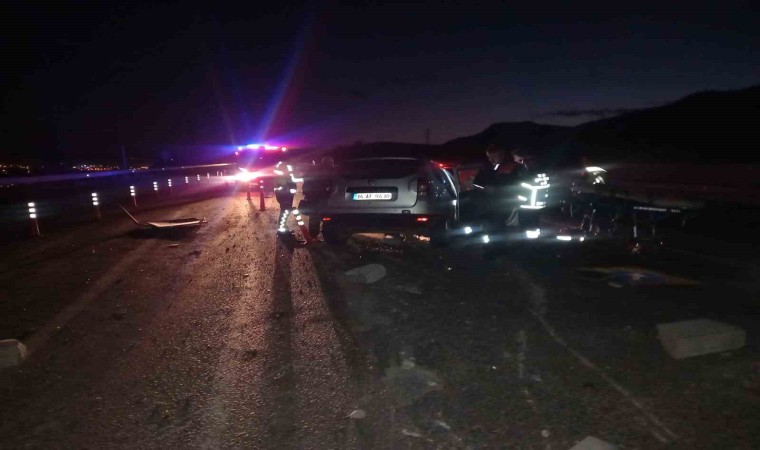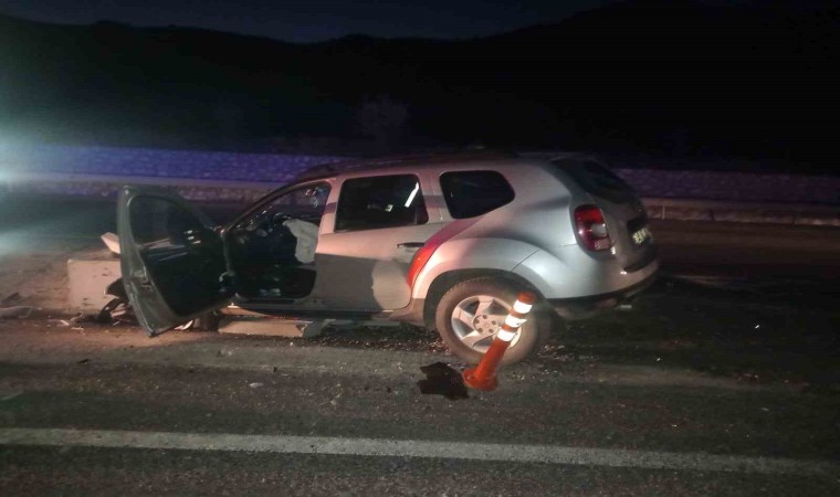 Amasya’da kontrolden çıkan otomobilin trafik levhalarına ve orta refüjdeki beton logara çarptığı kazada 2 kişi yaralandı.