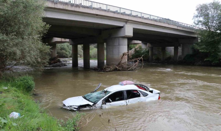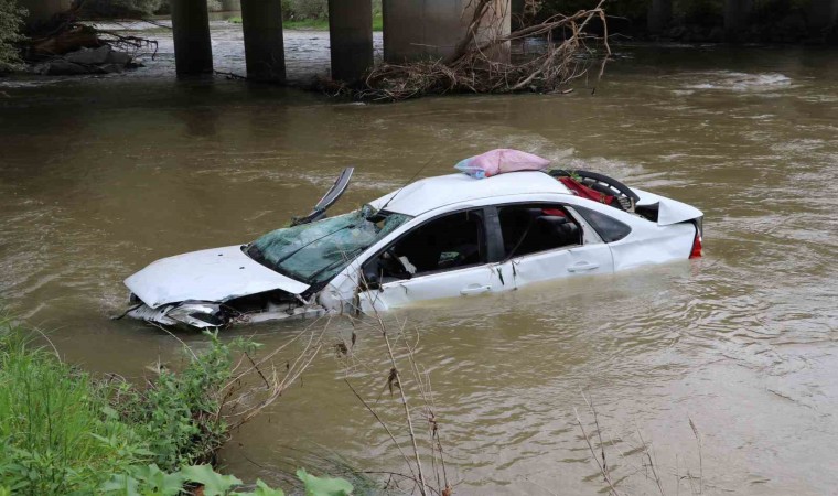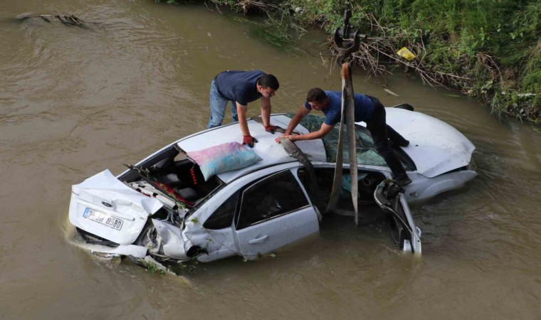 Otomobil, vinç yardımıyla sudan çıkartıldı. Kazayla ilgili inceleme başlatıldı.