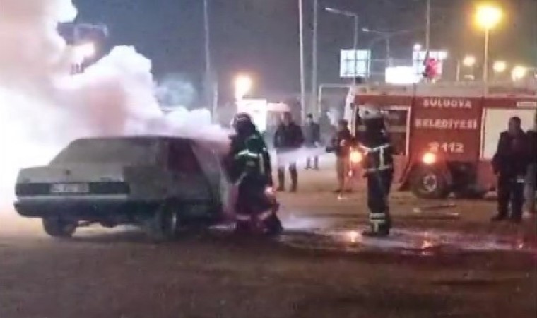 Amasya’nın Suluova ilçesinde seyir halindeki Fiat Tofaş marka otomobilin motor bölümünde yangın çıktı. Kısa sürede alev topuna dönen otomobil, itfaiye ekiplerince söndürüldü.