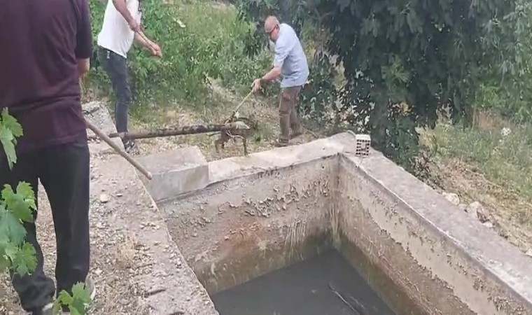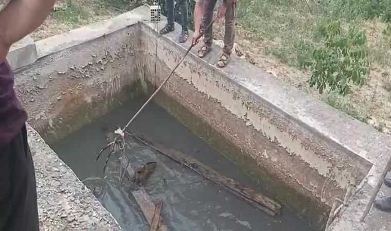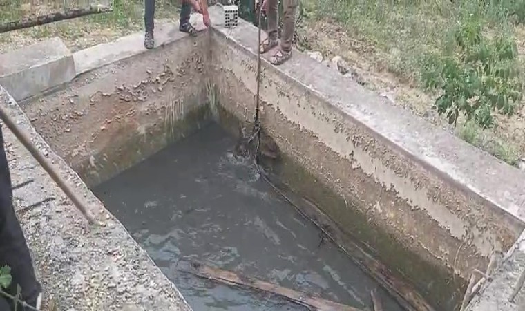 Amasya’da bir köyde sulama havuzuna düşen yaban domuzu yavrusu kurtarıldı.