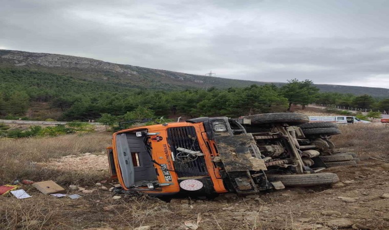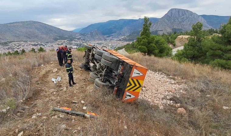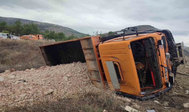 Amasya’da freni tutmayan taş yüklü kamyon şarampole devrildi. Yaralanan sürücü ambulansla hastaneye kaldırıldı.