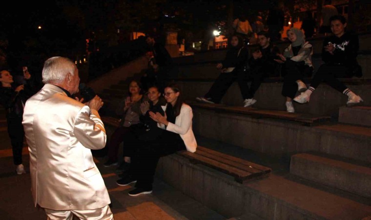 Amasya’da yaşayan 77 yaşındaki İsmail Tuna, her akşam verdiği sokak konserleriyle dinleyicilerinin beğenisini kazanırken, performansıyla da yaşıtlarına taş çıkartıyor. Zeki Müren hayranı olan İsmail dede, sesini ve hareketlerini müthiş bulduğu Sibel Can ile düet sorusuna “Herhalde yapamayız, zannetmiyorum. Acemiyim” cevabını verdi.