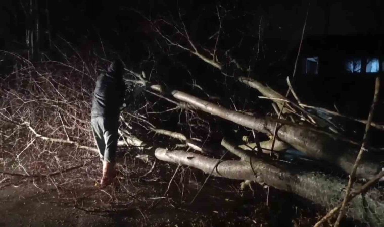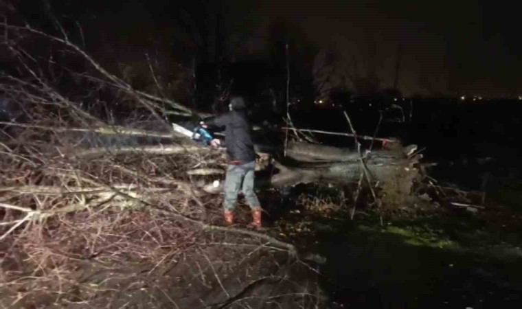 Amasya’da geç saatlerde fırtınanın etkili olduğu anlarda bir evin çatısında yangın çıktı, sokaktaki ağaç ise yola devrildi. Yolu kapatan ağacın dallarını ise hızar motoruyla bir vatandaş kesti.