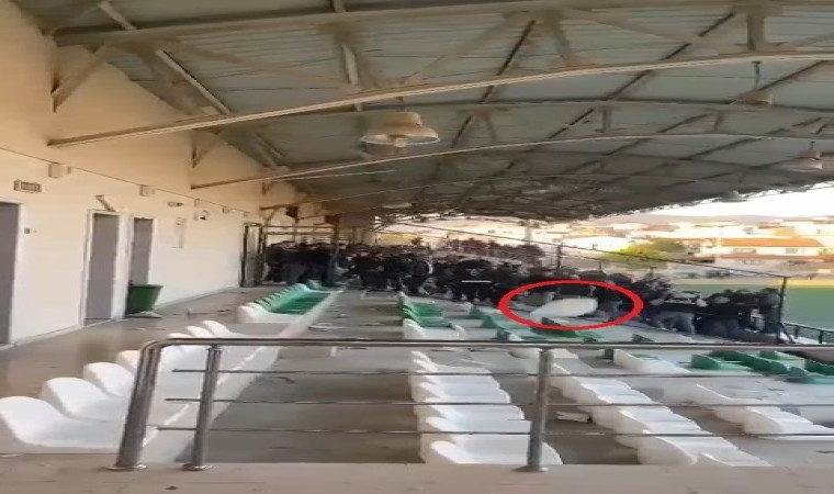Bursa’da oynanan bir maçta taraftarlar arasında gerginlik çıktı. Koltukların havada uçuştuğu anlar amatör kameraya yansıdı.
