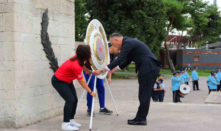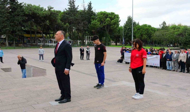 Balıkesirli Amatör Sporcular ile Balıkesir Gençlik ve Spor İl Müdürü Adem Özalp Atatürk, çelenk koyarak, törenleri başlattılar.