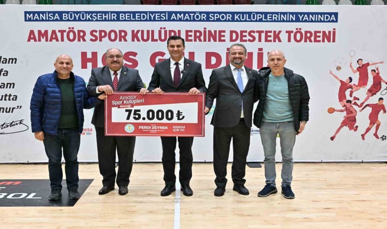 Başkan Zeyrek, amatör spor kulüplerine finansal destek, altyapı geliştirilmesi, medya desteği ve eğitim programları dahil 4 farklı başlıkta destek verildiğini söyledi. Başkan Zeyrek, “Bugün Bal, Süper Amatör ve Amatör kümede bulunan futbol takımlarımıza, toplamda 4 milyona yakın Nakdi destek sunacağız. Bu desteklerle sadece amatör sporcuların değil, tüm toplumun fayda göreceğine inanıyorum. Fiziksel ve mental sağlığı geliştiren, toplumsal bağları güçlendiren, genç yetenekleri ortaya çıkaran amatör sporların, gelecekte daha sağlıklı ve güçlü bir Manisa’nın temellerini atacağına inanıyorum. Tüm kulüplerimizin ve sporcularımızın her zaman yanlarında olduğumu bir kez daha belirterek, sevgilerimi iletiyor, sonsuz başarılar diliyorum” dedi.