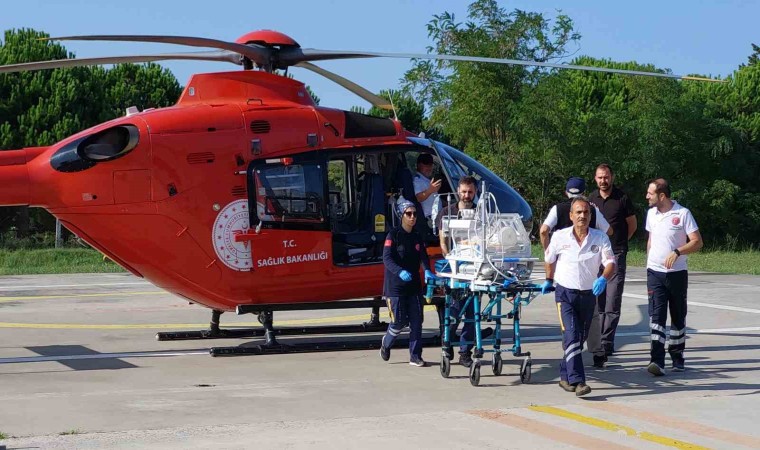 Samsun’da ambulans helikopter, solunum sıkıntısı çeken 9 aylık bebek ile rahatsızlanan 79 yaşındaki yaşlı kadını ayrı ayrı alarak hastanelere yetiştirdi.