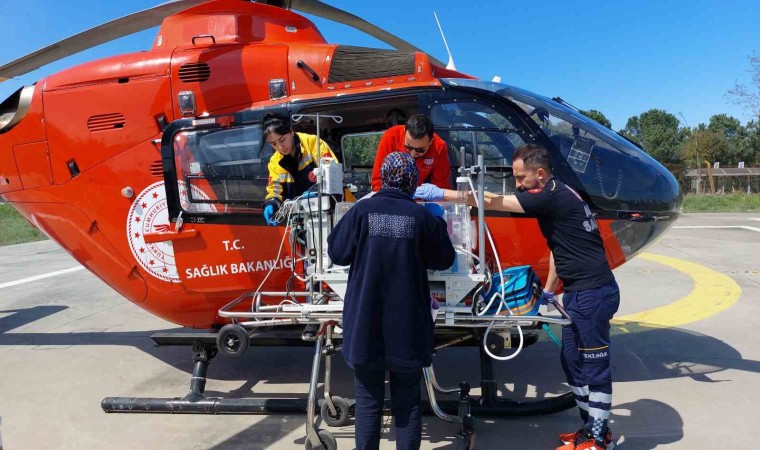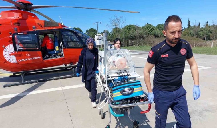 Samsun’da ambulans helikopter, yeni doğan bebek için zamanla yarıştı.