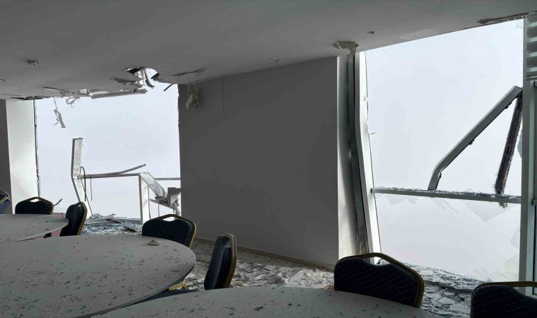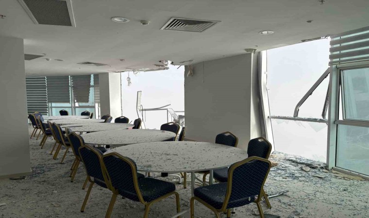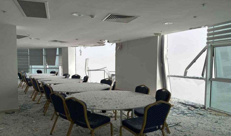Ambulans helikopterin hastanenin dördüncü katındaki yemekhane bölümüne çarptığı yer hastane içerisinden görüntülendi. Görüntülerde hastane içindeki, duvar ve pencerelerdeki tahribat yer alıyor.