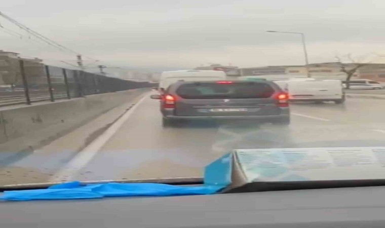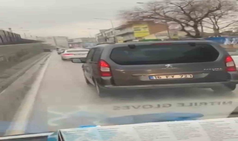Bursa’da sol şeritte ilerleyen ambulansın önüne geçen hafif ticari araç sürücüsü ambulansa yol vermedi. O anlar kameraya yansırken, görüntüler ise ‘pes’ dedirtti.