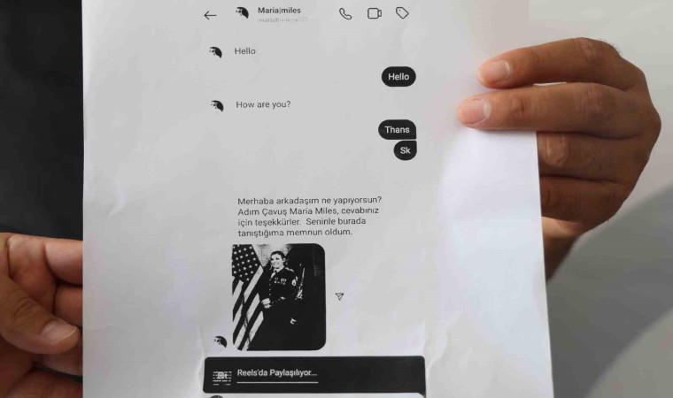 Hatay’da bir kişi, sosyal medya üzerinden tanışıp sohbet ettiği, ’Maria Miles’ ismiyle kendini Amerikan ordusunda görevli çavuş olarak tanıtan kadın hesabı tarafından 24 bin 321 TL dolandırıldı.