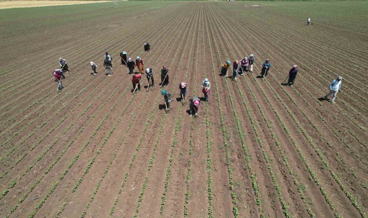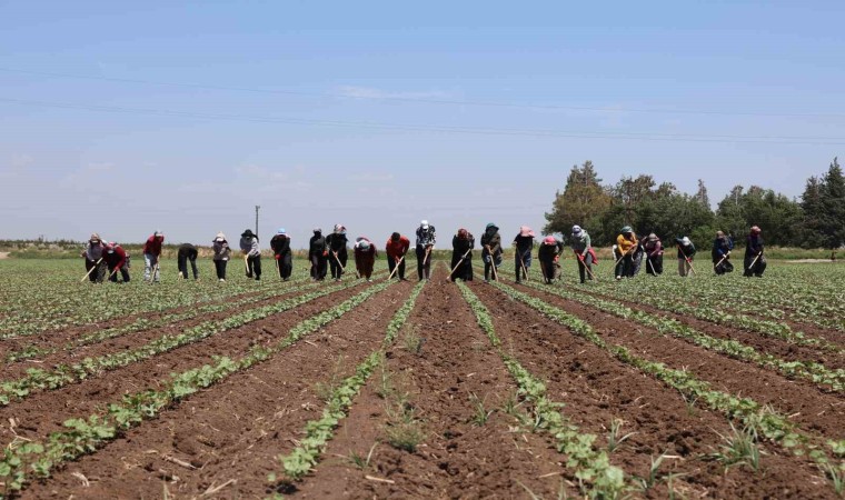 Depremin vurduğu Hatay’da yaralar sarılmaya devam ederken Türkiye’nin tarım ürünleri üretim merkezi olan Amik Ovası’nda da çiftçilerin çalışmaları aralıksız devam ediyor. Buğdayın hasadının ardından çiftçiler, pamuğu toprakla buluşturmuştu. Pamuğun filizlenmesiyle çevresinde oluşan yabani otları temizlemeye başlayan tarım işçilerinin 40 dereceyi geçen sıcakta zorlu çapa mesaisi devam ediyor. Reyhanlı ilçesi Terzihüyük Mahallesi’nde çapa mesaisine devam eden tarım işçileri 9 saat çalışarak 515 TL yevmiye alıyor. Sabah 6’da mesaileri başlayan tarım işçilerinin, aşırı sıcaklıklara karşı öğlen 3’e kadar çalışıyorlar.