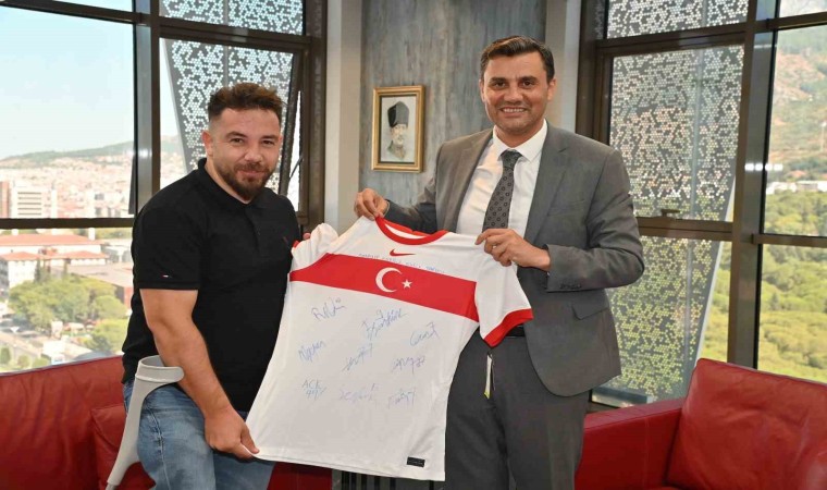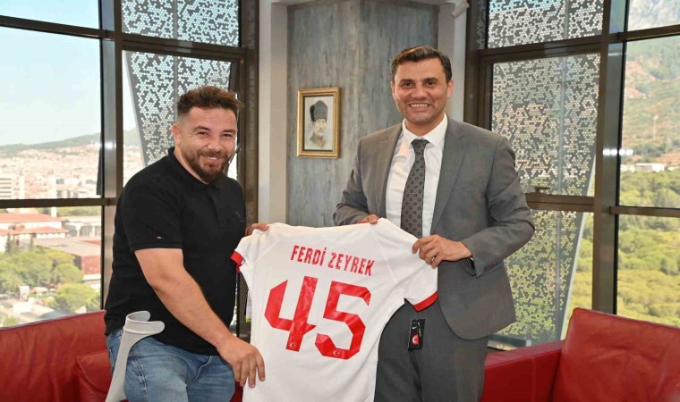 Manisa Büyükşehir Belediye Başkanı Mimar Ferdi Zeyrek, Ampute Futbol Milli Takım Kaptanı Rahmi Özcan’ı konuk etti. Rahmi Özcan, Başkan Zeyrek’e üzerinde isminin yazılı olduğu ve oyuncular tarafından imzalanmış formayı hediye etti.