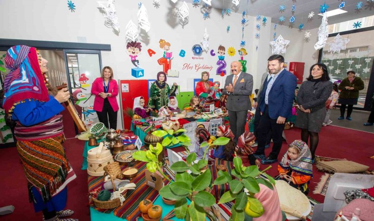 Büyükşehir Belediyesi’nin okul öncesi eğitimde bir marka haline gelen Ana Kucakları’nda eğitim gören minikler, ‘Yerli Malı Haftası’nı renkli bir programla kutladı. Türkiye’nin 7 bölgesine özgü yiyecek, kıyafet ve dans figürlerinin sergilendiği programda, çocuklar yerli malı kullanmanın önemini büyüklere anlattı.