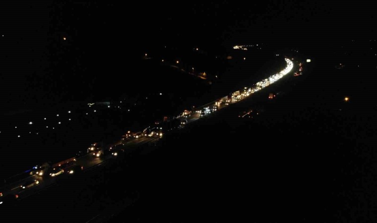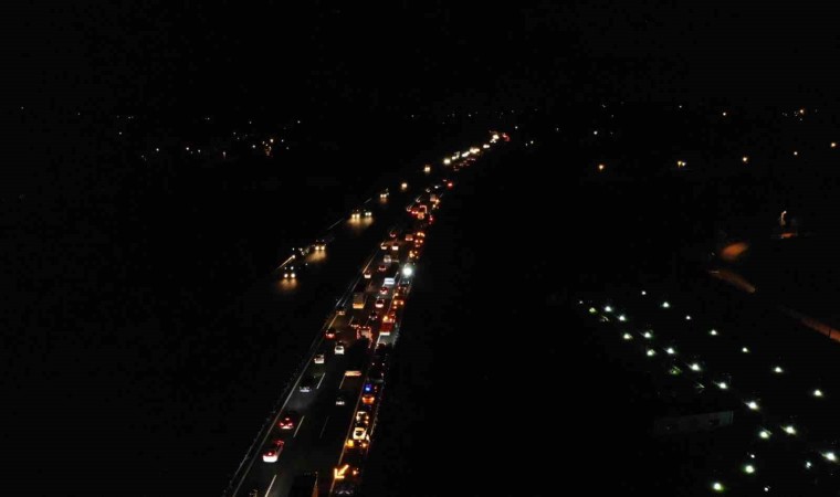 Anadolu Otoyolu Sakarya geçişinde 14 aracın karıştığı zincirleme trafik kazasında 3 kişi yaralandı. Meydana gelen kazada otoyolun İstanbul istikametinde oluşan kilometrelerce araç kuyruğu havadan görüntülendi.