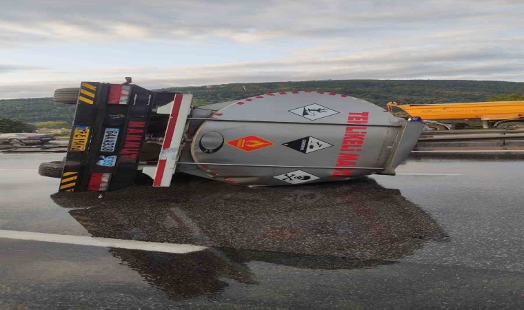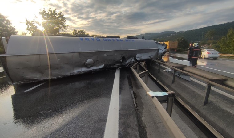 Anadolu Otoyolu Sakarya geçişinde sürücüsünün direksiyon hakimiyetini kaybetmesi neticesinde kontrolden çıkan etilen glikol yüklü tanker devrildi. Meydana gelen kaza sonrasında kilometrelerce oluşan araç kuyruğu, devrilen aracın yoldan kaldırması ile birlikte normal seyrine döndü.
