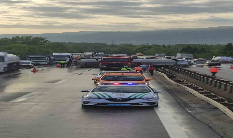 Otoyolun Sapanca ilçesi Kırkpınar Mahallesi mevkii İstanbul istikametinde meydana gelen kazada, etilen glikol yüklü yabancı plakalı tanker, sürücüsünün direksiyon hakimiyetini kaybetmesi neticesinde kontrolden çıkarak devrildi. Bir bölümü karşı şeride geçen tankerin karıştığı kazada yaralanan olmazken otoyolun Ankara istikametinin bir kısmı, İstanbul istikametinin tamamı bir süre trafiğe kapandı. Durumun haber verilmesi üzerine bölgeye itfaiye ve polis ekipleri sevk edildi. Bölgeye gelen ekipler, trafiği açmak için çalışma başlattı. Yapılan çalışmalar neticesinde tanker bulunduğu yerden kaldırılırken trafik normal seyrine döndü. Kaza sebebiyle oluşan akıcı yoğunluk ise havadan görüntülendi.