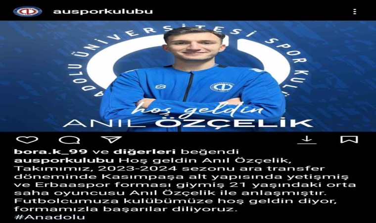 TFF 3. Lig ekibi Anadolu Üniversitesi, Kasımpaşa alt yapısında yetişen 21 yaşındaki orta saha oyuncusu Anıl Özçelik’i renklerine bağladığını duyurdu.