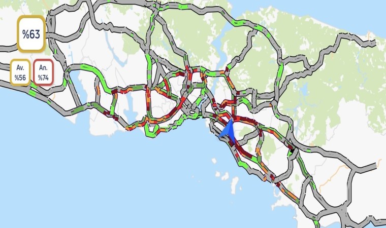 İstanbul’da beklenen yağmur sabah saatlerinde etkisini göstermeye başladı. İstanbul Büyükşehir Belediyesi (İBB) trafik yoğunluk haritası verilerine göre, il genelindeki yoğunluk saat 09.00 itibarıyla yüzde 63 olarak ölçülürken Anadolu Yakası’nda trafik yoğunluğu yüzde 74 seviyelerine ulaştı.