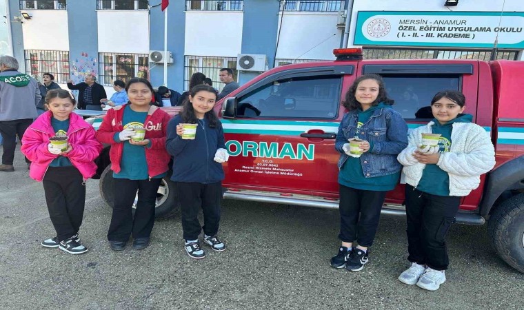 Mersin’in Anamur ilçesinde öğrenciler ceviz tohumlarını toprakla buluşturdu.