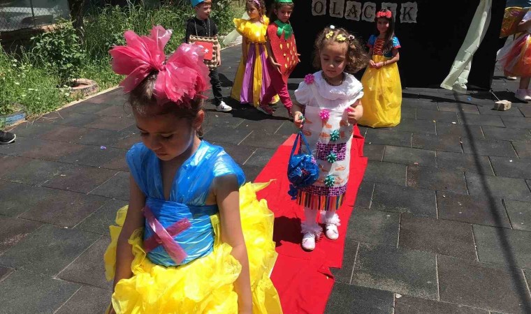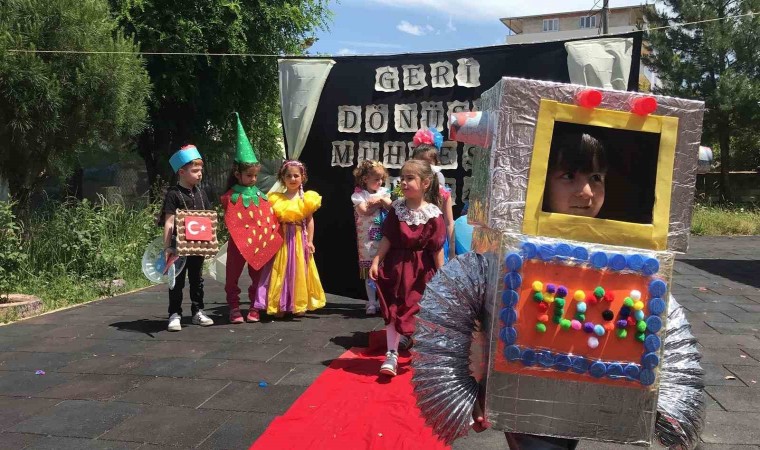 Batman’da Cumhurbaşkanı Recep Tayyip Erdoğan’ın eşi Emine Erdoğan himayesinde yürütülen ’sıfır atık’ projesine destek vermek amacıyla atık malzemelerden elde edilen ürünlerden kıyafetleri giyen anaokulu öğrencilerinin defilesi mankenlerin defilelerini aratmadı.